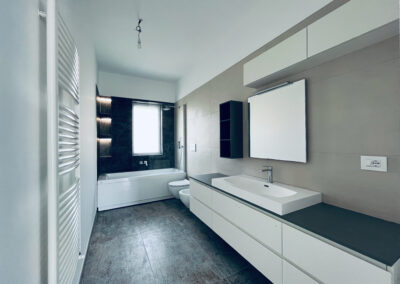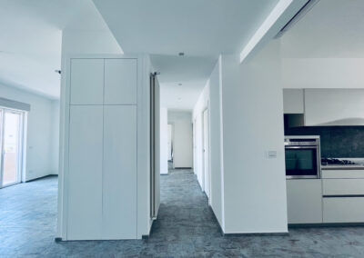 Il progetto si distingue per la sua capacità di reinterpretare gli spazi esistenti, dando nuova vita a ogni ambiente. Ogni area è stata ripensata per ottimizzare la funzionalità e il comfort. La zona giorno, ora più ampia e luminosa, diventa il cuore pulsante della casa. Le camere da letto sono state progettate per offrire un rifugio intimo, con finiture che riflettono un’eleganza sobria. L’uso strategico della luce naturale crea atmosfere calde e accoglienti, i materiali scelti conferiscono un tocco di modernità.