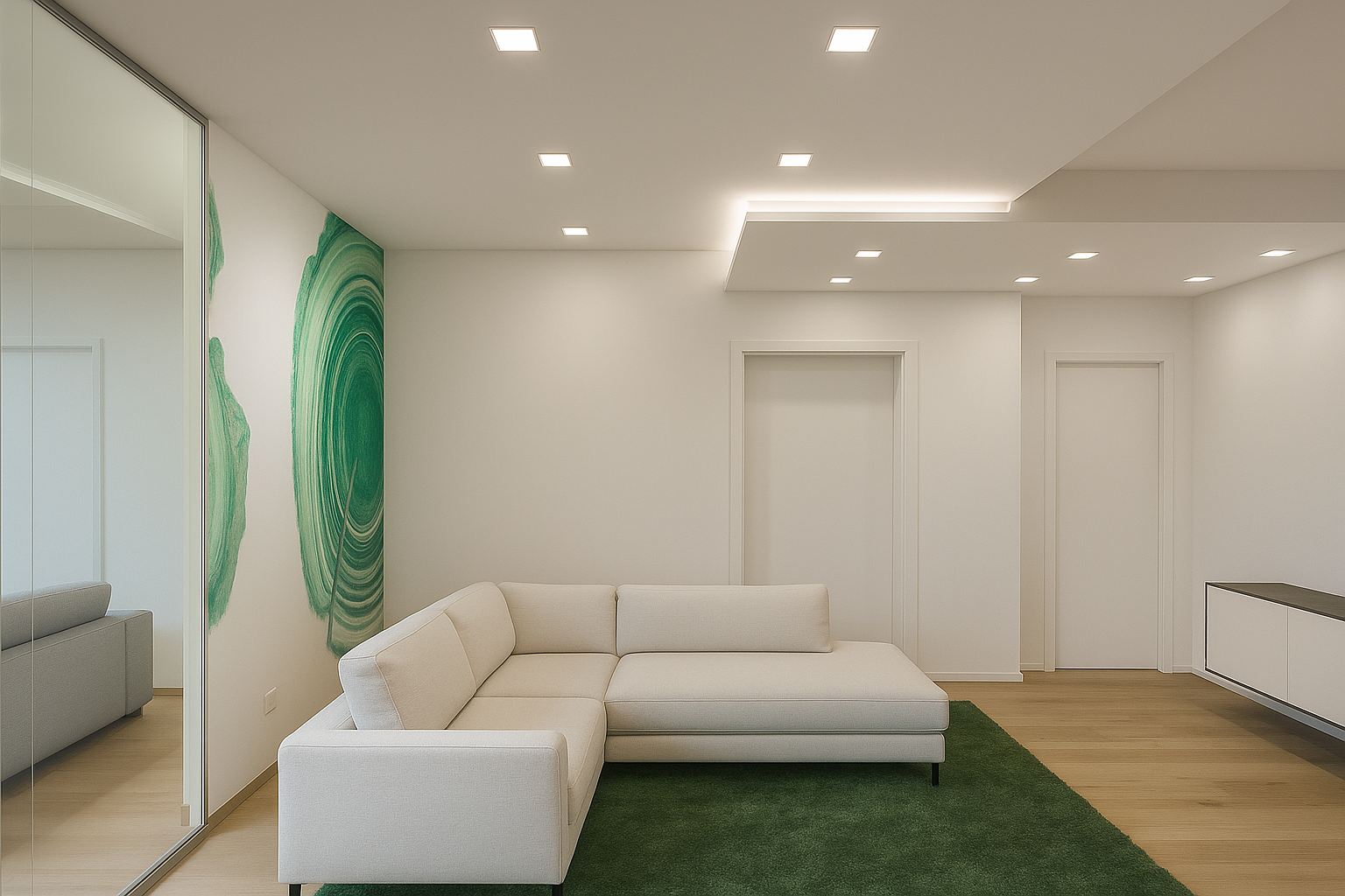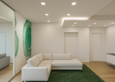 Intervento migliorativo della distribuzione degli spazi secondo esigenze dei proprietari di un’abitazione di 134 mq di nuova costruzione. Il progetto ha compreso il disegno delle finiture, di parte degli arredi, dell’illuminazione e del controsoffitto in cartongesso su due livelli.